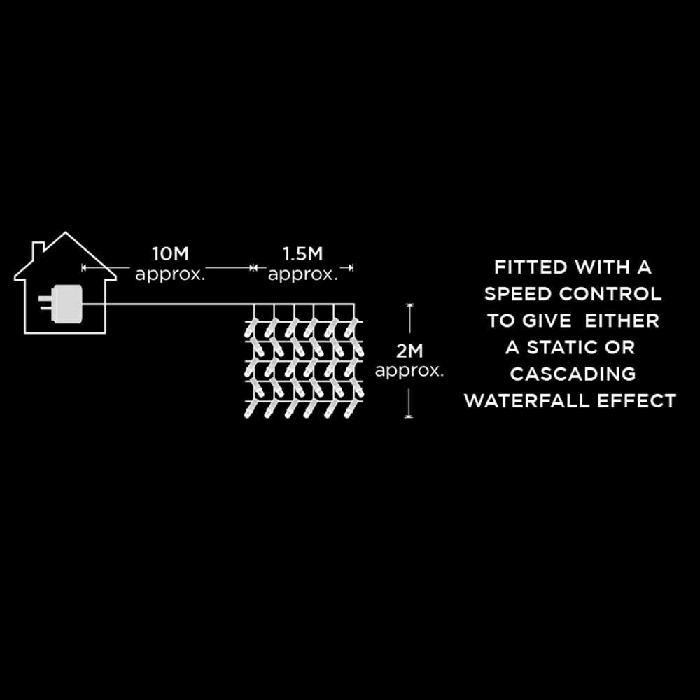 Add some Christmas sparkle to your house or business with these quality, long-lasting LED curtain lights.*Suitable for use indoor & outdoor * Shape of the net allows to easily install and take down the lights * Lights can either be Static or Cascading (with speed controller) *Memory function - chosen action will be remembered after turning the lights off and then on again * Ideal for decorating windows and buildings for Christmas and New Year * Can be also used all year round and for any occasion such as wedding, birthday party or even barbecue in the garden * Mains operated *Low voltage * Supplied with UK 3 pin plug * Part of our extensive decorative lighting rangeBulb Colour - Warm WhiteNumber of Bulbs - 240Cable Colour - ClearCable Length from plug to first bulb - 10mCurtain Size - 1.5m Wide x 2m DropBulb Colour - Warm WhiteNumber of Bulbs - 240Cable Colour - ClearCable Length from plug to first bulb - 10mCurtain Size - 1.5m Wide x 2m DropBulb Colour - Warm WhiteNumber of Bulbs - 240Cable Colour - ClearCable Length from plug to first bulb - 10mCurtain Size - 1.5m Wide x 2m Drop