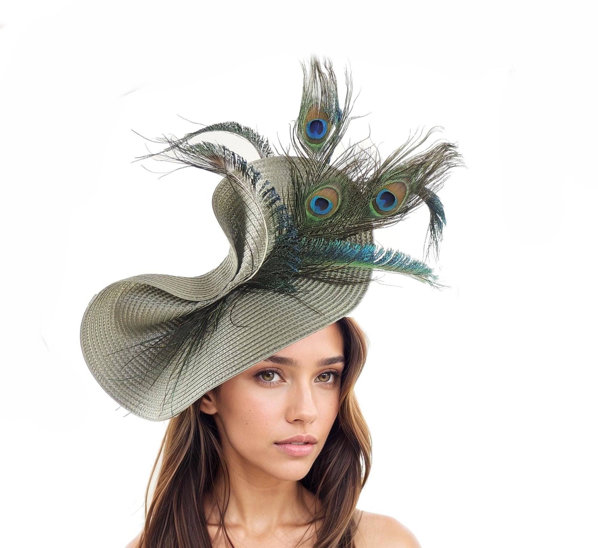 Dark Sage Green Peacock Teal Statement Hatinator Womens Kentucky Derby Hats Wedding Ascot Fascinator Headpiece Headwear Hat Olive Dusky Fun