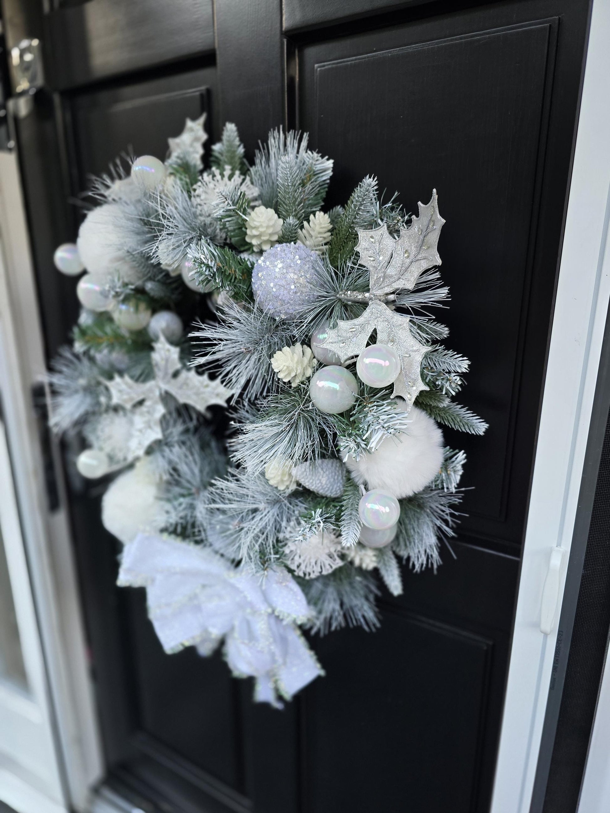 Product Description:Bring refined winter beauty to your holiday decor with this 60cm White & Silver Frosted Christmas Wreath, designed with a full, fluffy green pine base lightly dusted with snow for a soft, wintry finish. Thoughtfully decorated with crisp white and shimmering silver elements, this wreath captures the essence of a serene seasonal landscape.