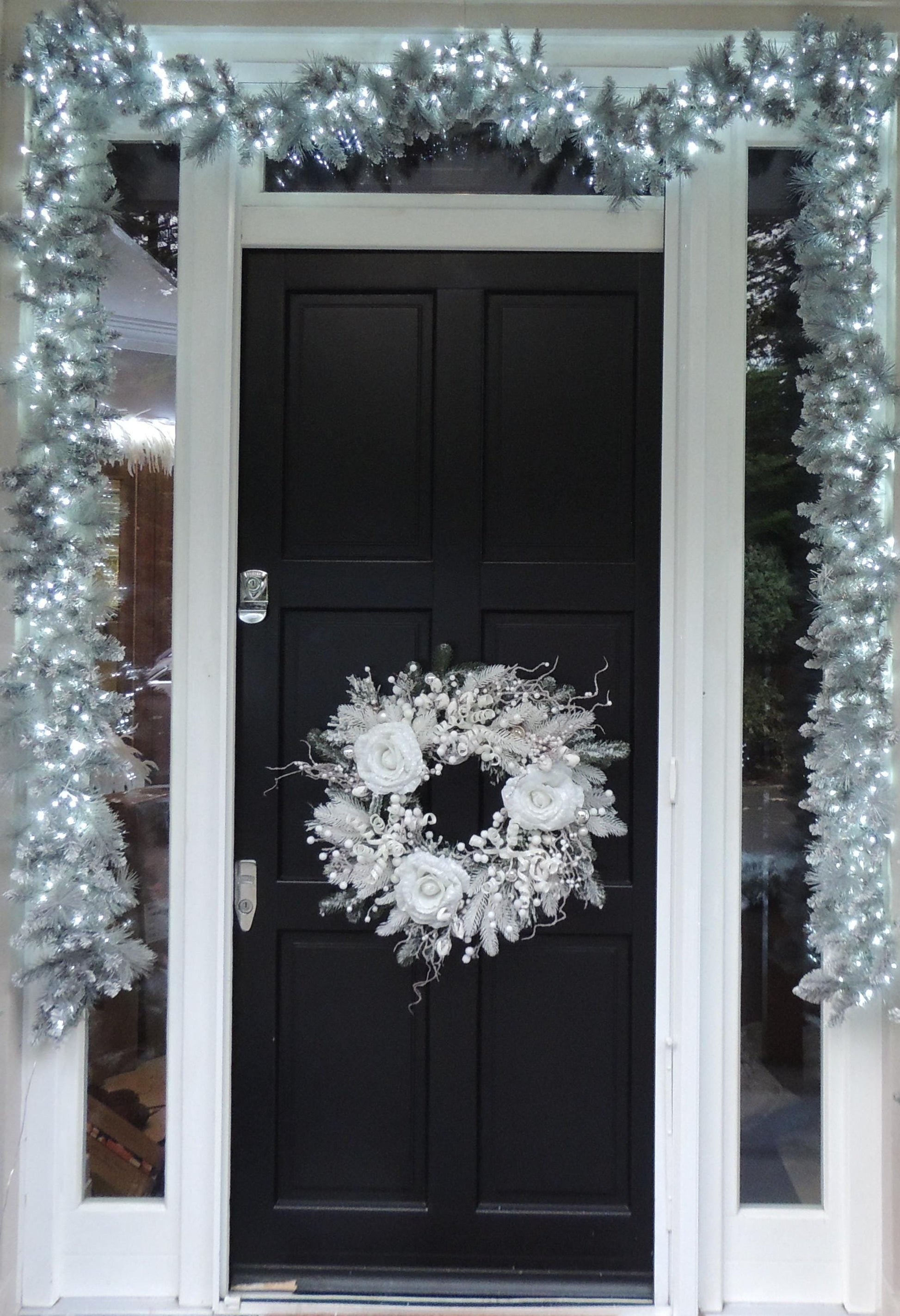 Luxury Christmas Frosted Wreath For Front Door, Fireplace Mantle, Luxury Home Decorations, White Silver Xmas, Winter Decor, Designer Wreath