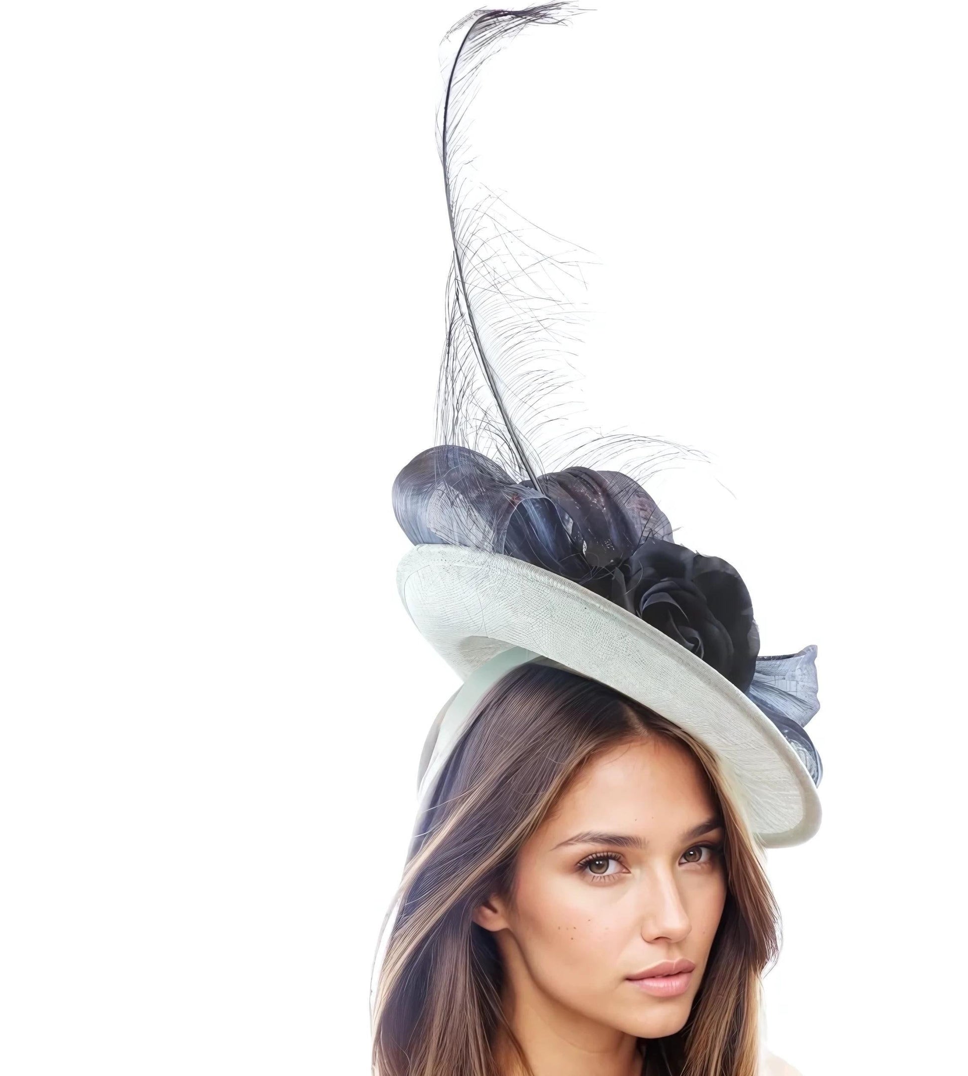 ✔ Bold & Elegant: A 12-inch sinamay base, 10-inch bow, and 18-inch burnt ostrich feather for a refined yet striking statement.